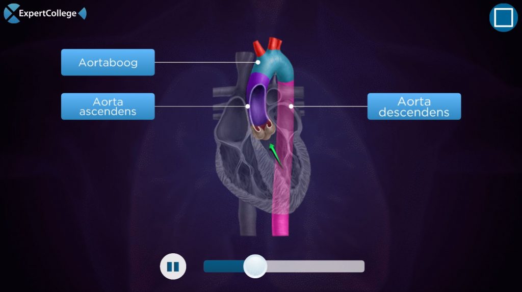 De aorta of de grote lichaamsslagader is de slagader die het gehele lijf van zuurstofrijk bloed voorziet. Deze ader brengt het bloed vanaf het hart naar de verschillende doelorganen. Zoals op de animatie is te zien, bestaat de aorta uit drie verschillende onderdelen. Het bloed komt via de longaders het hart binnen via het eerste […]