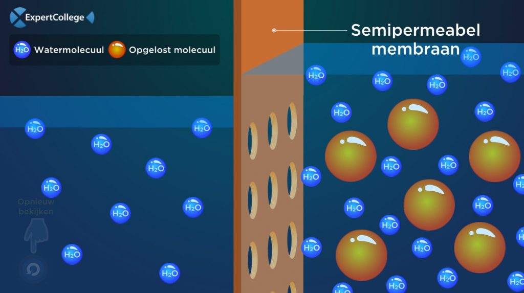 Meer over deze animatieDe animatie laat osmose zien. Dit is een proces waarbij een vloeistof met daarin een opgeloste stof verdeeld is en wordt gescheiden door een semipermeabele membraan. Deze membraan laat wel vloeistof door, maar de opgeloste stof kan hier niet doorheen. Osmose vindt plaats wanneer de concentratie van de opgeloste stof aan één van de kanten van de […]